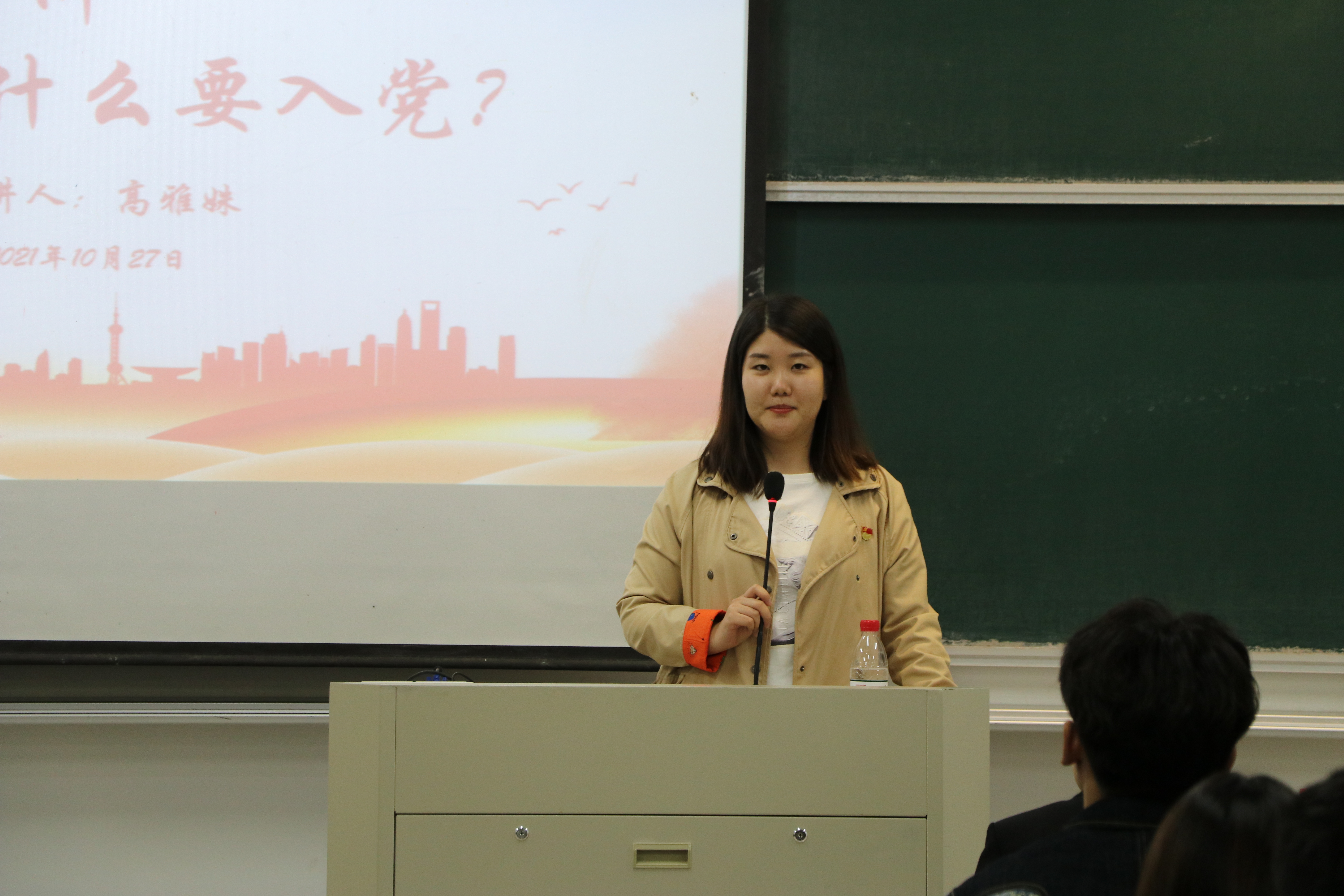 10月27日晚,为进一步提升党员和入党积极分子的党性意识,公司党委书记吴春老师、机关第九支部钮亚茹、yl永利集团官网登录全体辅导员开展了“听党话、跟党走、讲党课”专题学习培训。吴春老师以“学党史、悟初心,端正入党动机争取早日入党”为题,从“为什么”、“是什么”、“怎样做”三个方面进行详尽地讲述。她多次提到要不忘初心、牢记使命,以天下为己任、以真理为依归,为中华民族伟大复兴贡献自己的全部力量,并希望入党积极分子们能够树立正确的入党动机,加强马克思主义理论修养,树立正确的世界观、价值观、人生观,主动投入到社会实践中去。