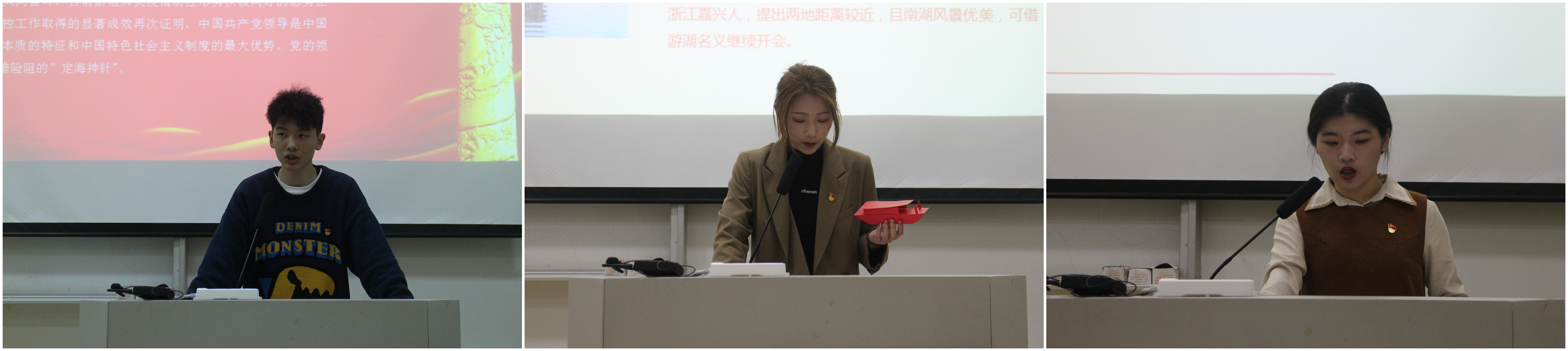之后,“真理甜味”主题微型党课比赛开始,来自14个班级的员工代表从不同的角度、主题展开演讲,慷慨激昂,逻辑严谨,表达大方,一句句朴实无华的语言、一个个感人至深的真实故事,赢得了台下观众的阵阵掌声。通过声情并茂的演讲,让台下的同学们对党和党史有了更深刻的认识。