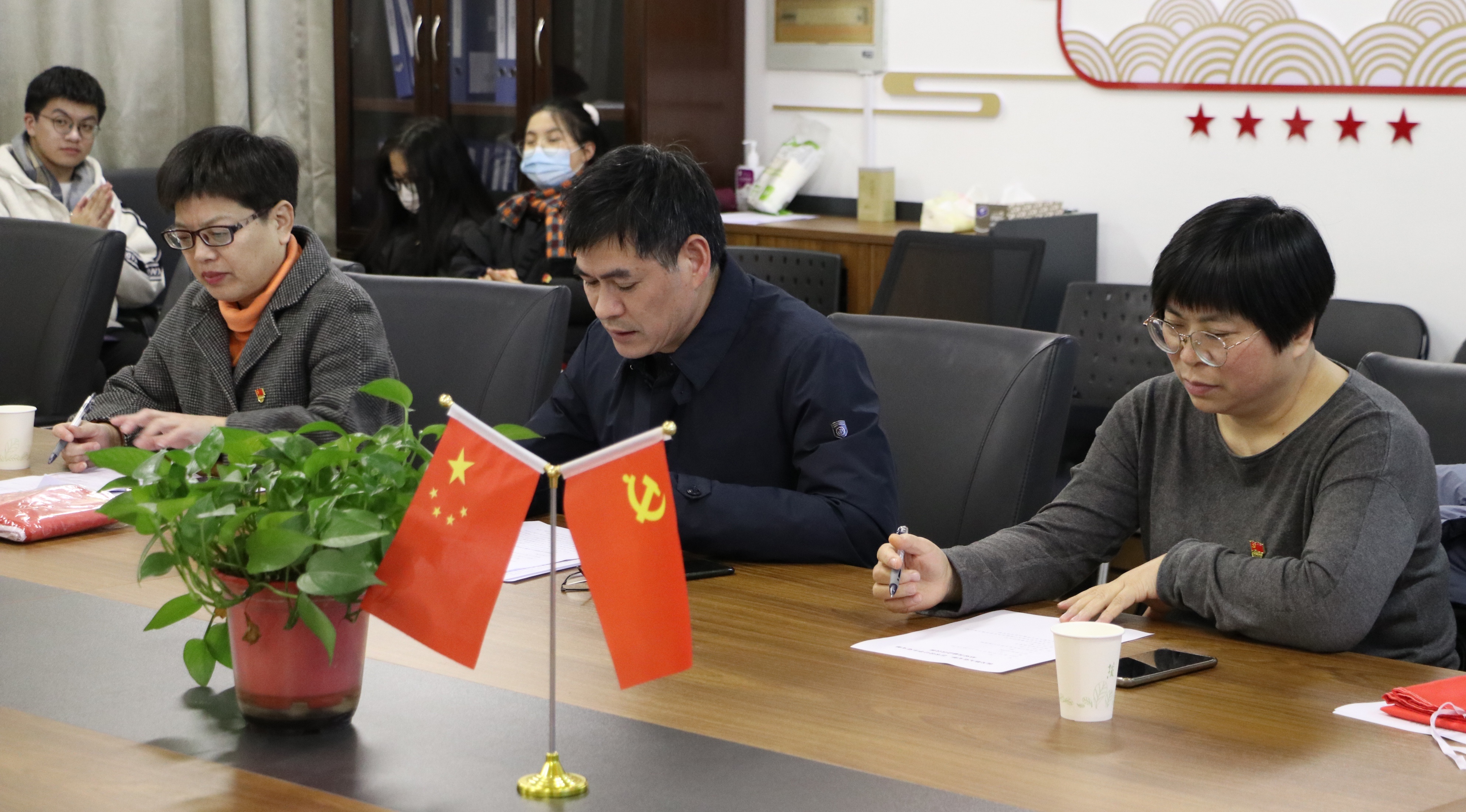 会议伊始,双方党支部书记共同签署了结对共建协议,并介绍了结对共建方案,希望结对党支部经常交流经验,共享信息与资源,探索党支部之间优势互补、资源共享、共同发展的党建新思路,不断增强党支部的创造力、凝聚力,充分发挥党支部战斗堡垒作用,努力提升党建工作科学化水平。随后,由机关第九党支部陈敏东、王华美、姜英波三位教师党员,为艺术设计员工党支部的师生党员作深入学习党的十九届六中全会精神“六学六讲”专题宣讲。