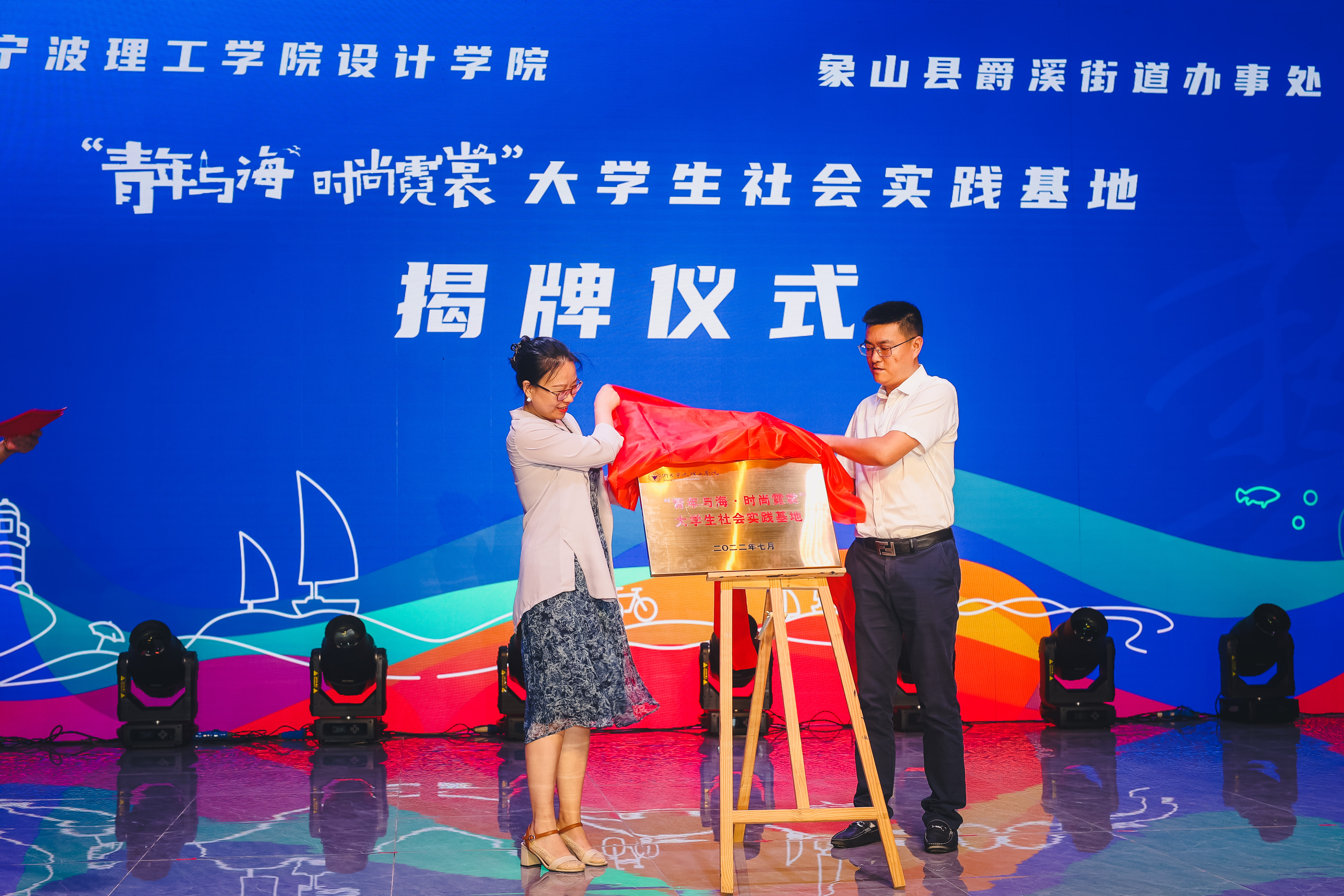yl永利集团官网登录设计教工党支部书记王萍与爵溪街道党工委副书记戴耿毅共同为实践基地揭牌