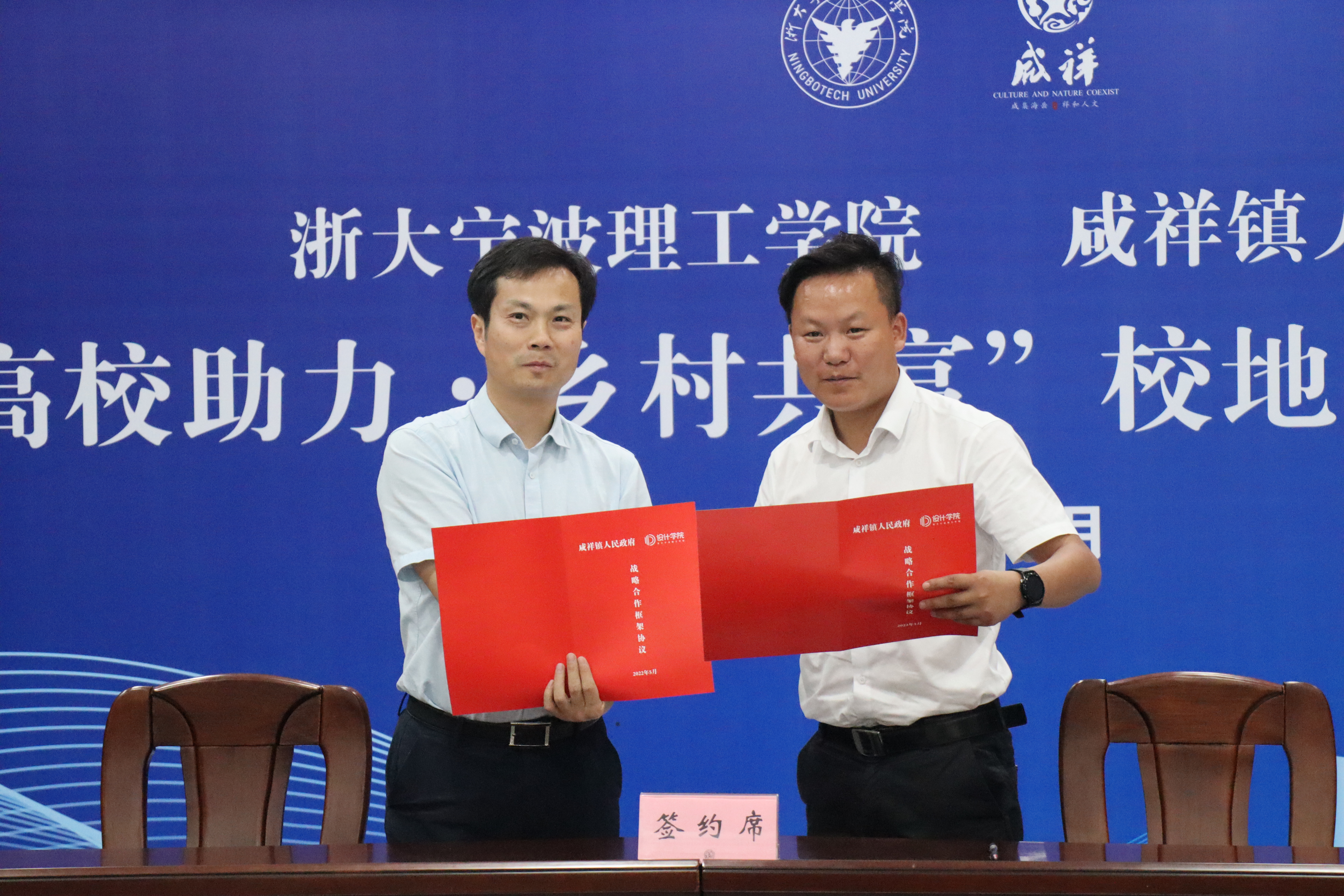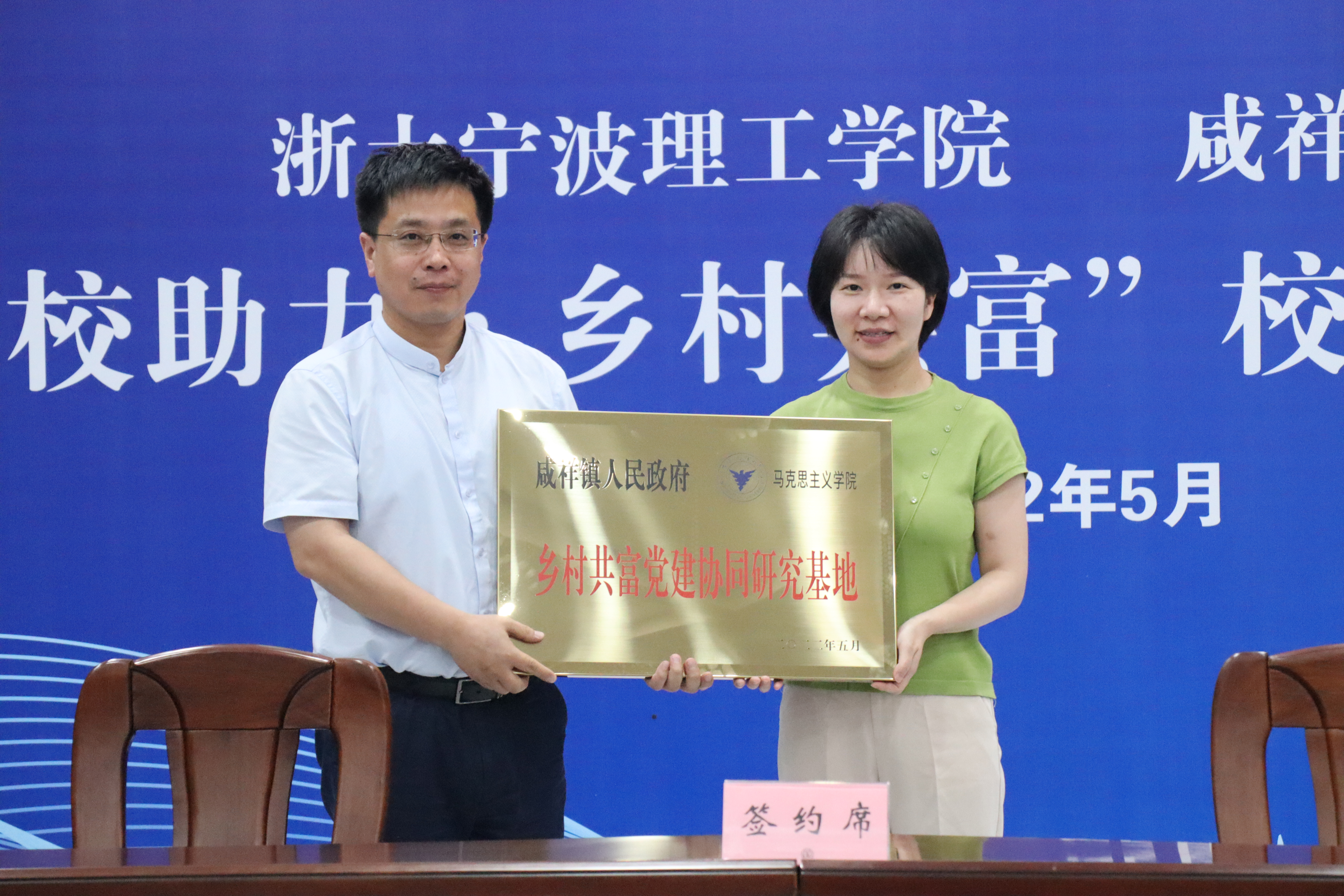 当天,双方还进行了“实践育人基地”“乡村共富党建协同研究基地”“未来乡村协同设计研究基地”“数字渔场协同研究基地”授牌。此外,在咸祥镇领导的陪同下,冯建波副书记一行还瞻仰了鄞州区革命烈士纪念馆、参观了芦浦古村、养殖基地和咸祥镇航空飞行营地。