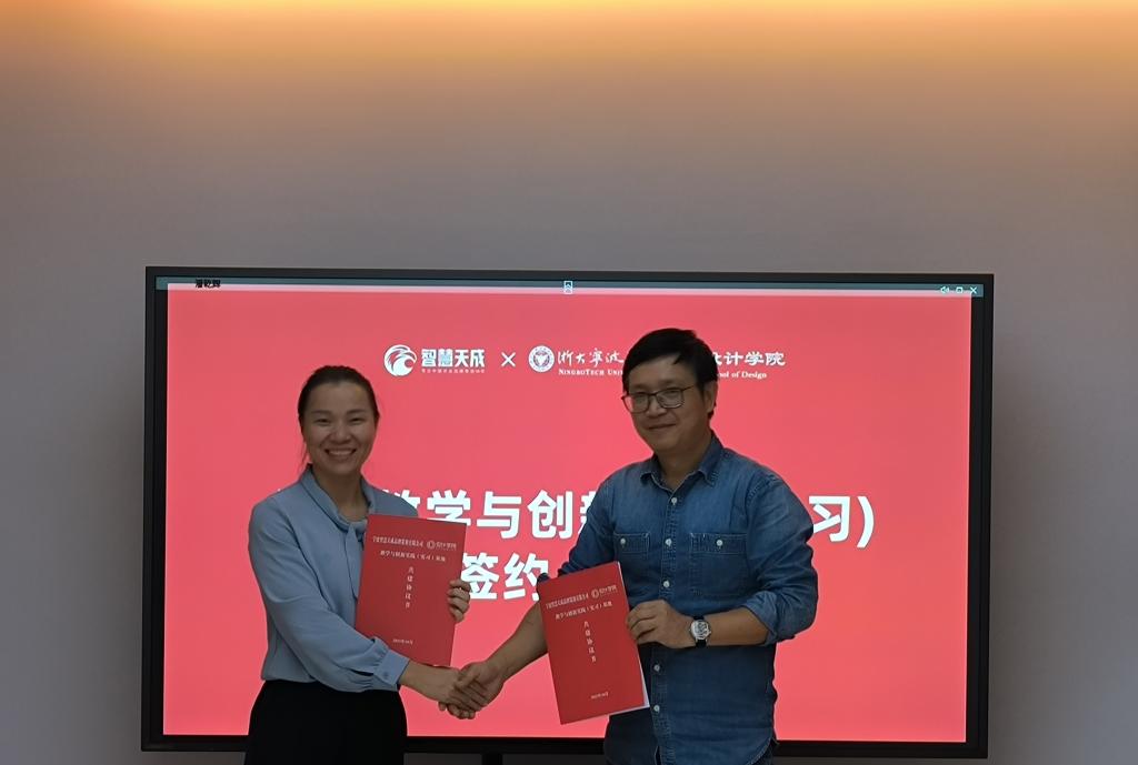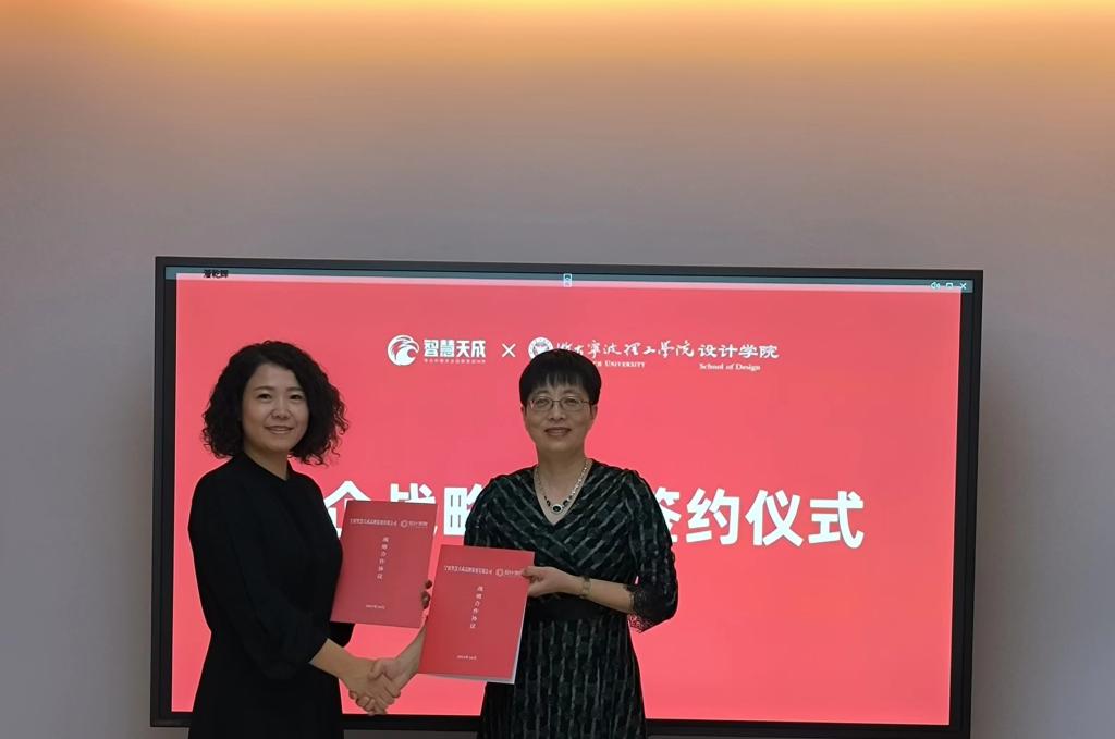 乡村振兴,品牌引领,为充分发挥设计学科专业对农业品牌策划的积极作用,10月17日下午,yl永利集团官网登录与宁波智慧天成品牌策划有限公司签订战略合作协议并共建教学与创新实践(实习)基地。公司党委书记吴春、党委副书记叶卫树、副经理赵建国、智能产品创新设计系副主任王萍、骨干教师陈昱、党政办主任曹莹,宁波智慧天成品牌策划有限公司创始人潘乾辉、左敏,总经理李娇文出席签约仪式。