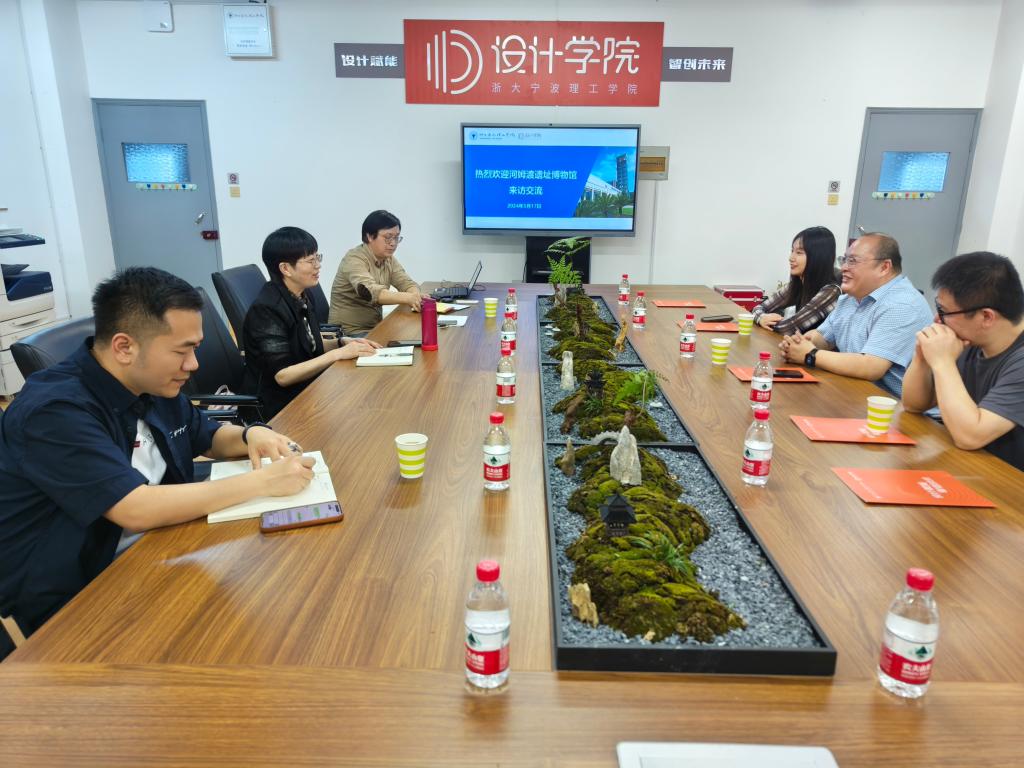 5月19日,河姆渡博物馆馆长谢向杰一行来访yl永利集团官网登录,参观2024届毕业设计河姆渡专题展并交流,公司党委书记吴春、副经理赵建国、经理助理励宇辉、骨干教师陈昱等参加了交流座谈。