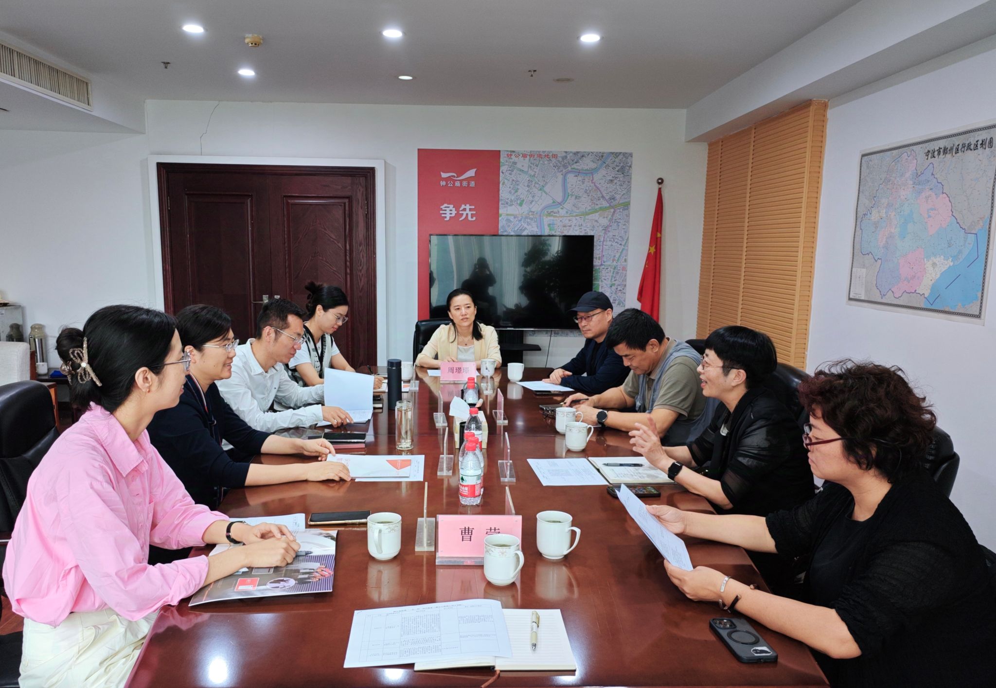为深入服务街道“一社一校”项目,以设计赋能社区改造和品质提升,10月16日,yl永利集团官网登录经理陈江、党委书记吴春、经理助理励宇辉、艺术与科技设计研究所所长白晓霞、建筑与城市规划研究所副所长周璟璟、党政办主任曹莹赴钟公庙街道对接“一社一校”项目,钟公庙街道党工委书记郭琼颖、副书记黄万军、组织委员施诗韵,党建办正科级专员周奕敏参加座谈交流。
