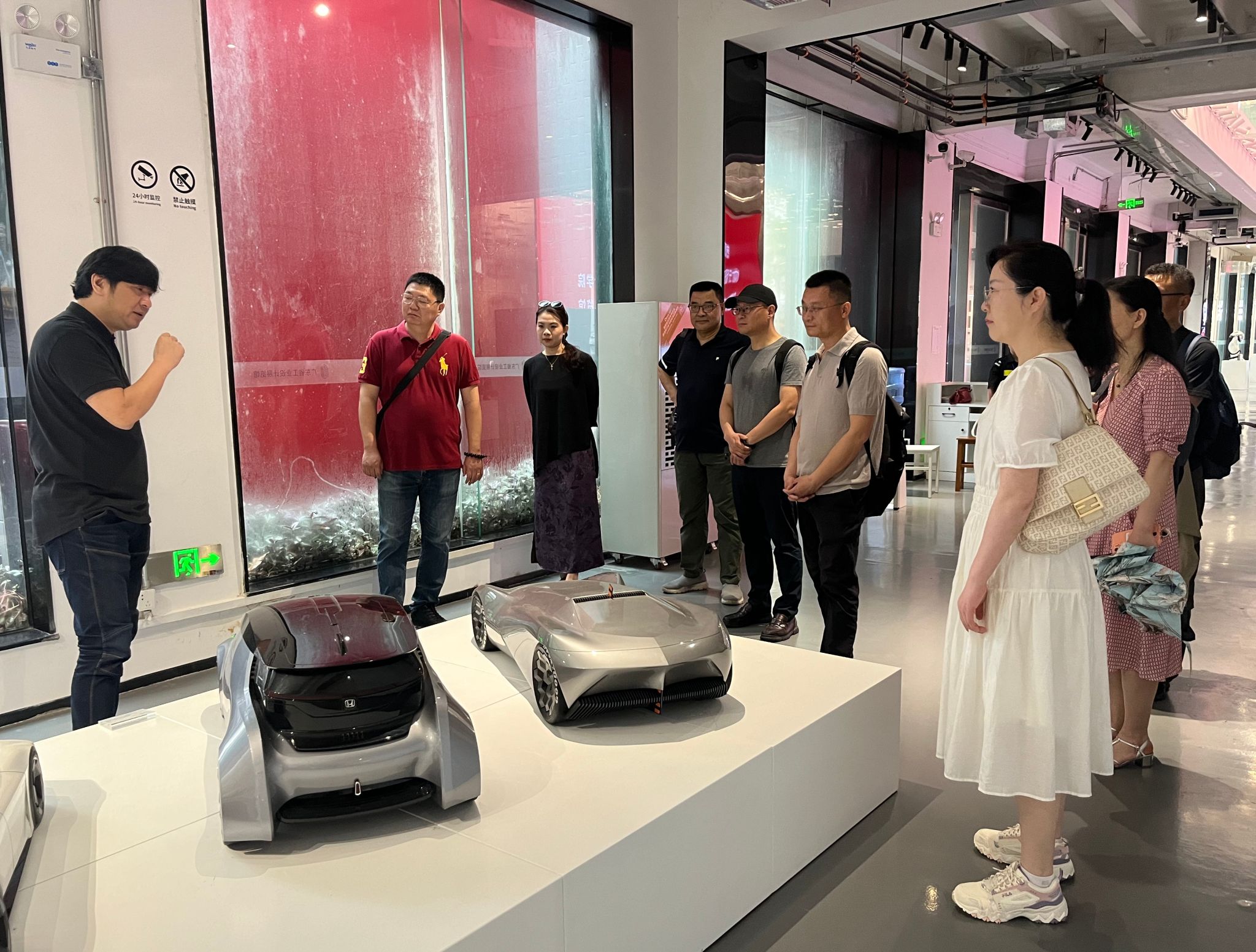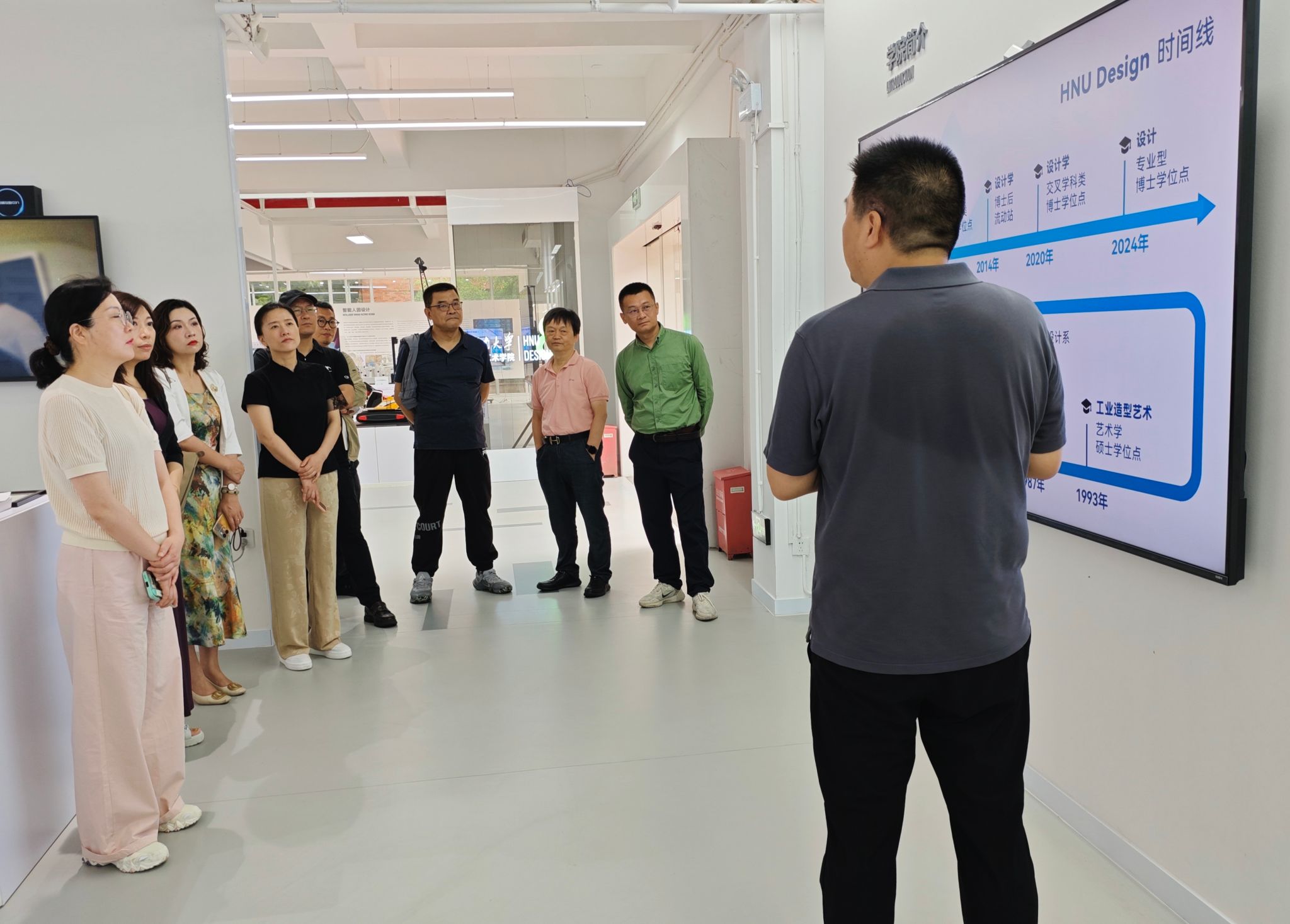 在湖南大学设计艺术公司,调研团实地考察了湖南省岳麓山工业设计创新中心麓山实验室、工业设计发源地四合院、湖南省工业设计协会、文化科技融合战略研究室等,深入了解了设计艺术公司的历史沿革、重要荣誉、教研教改、科学研究、社会服务等情况,详细参观了智能人因设计、数字文化创新、智慧健康、数据智能与服务设计、可持续与生态设计、文化科技融合、智能产品与装备、智慧出行等领域的最新设计成果,为公司深化教学改革、凝练科研方向提供了宝贵经验和重要启发。