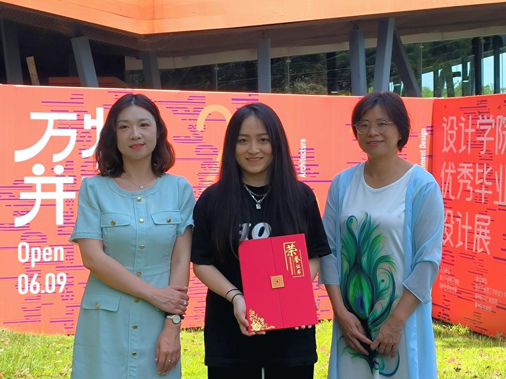 随后,工业设计专业乔怡卓同学作为毕业生代表发言,感谢母校的精心培养,祝愿母校越办越好。毕业生代表们为老师们回赠了一份神秘小礼物——毕业生自己设计的作品表达感谢。最后,吴春宣布,yl永利集团官网登录2023届优秀毕业设计展开幕!