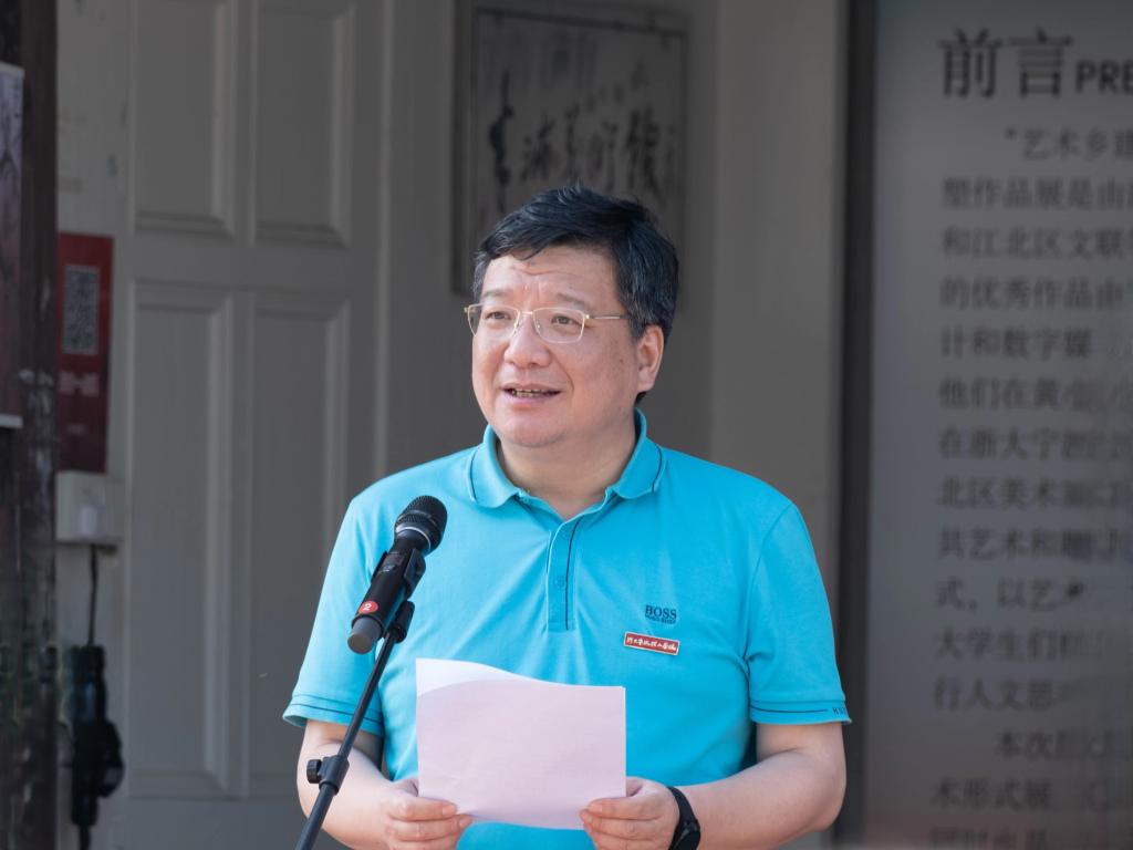 黄光杰为开幕式致辞。他首先向江北区政府、江北区文联、半浦村以及半浦美术馆对此次展览的大力支持表示衷心感谢,并充分肯定了师生的公共艺术、角色雕塑作品。他指出,老师和同学们通过巧妙构思、融合探索、精心塑造,为大家呈现了一场艺术乡建的视觉盛宴。希望通过此次展览,深化公司与江北区半浦村的交流与合作,共同打造文化先行的特色成果,为宁波现代化滨海大都市建设增添艺术的亮色。