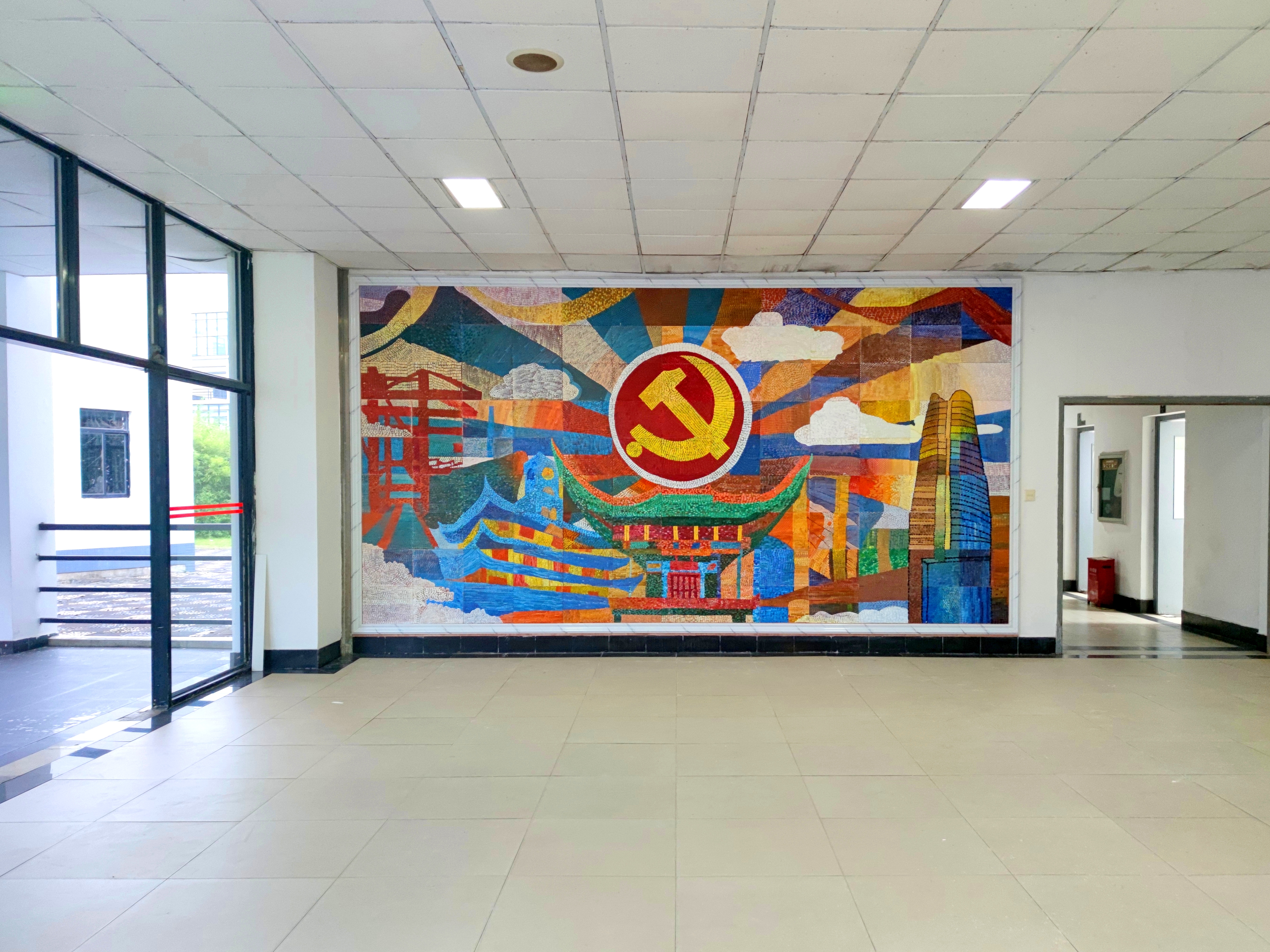 走进永利集团官网南教学楼F区一楼大厅,一幅巨型红色画作映入眼帘。在喜迎党的二十大胜利召开之际,为了给艺术创作注入情感和灵魂,表达青年学子对党和国家以及宁波的热爱,yl永利集团官网登录环境设计专业211班员工在图形叙事课程任课教师鲁微微、励宇辉的指导下,将专业技能与课程思政相融合,贯彻设计艺术思想,充分运用图形叙事表现技法,开展了以“喜迎党的二十大——‘艺’心向党、‘甬’在我心”为主题的结课绘画创作活动。