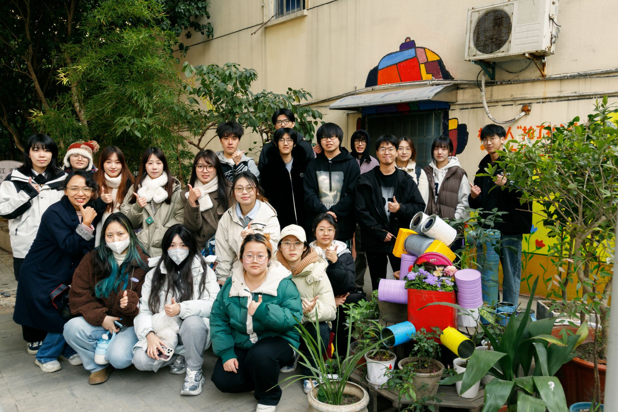 近日,公司yl永利集团官网登录环境设计专业2022级学子走进宁波市百丈街道华严社区,开展了一场以“艺术赋能——彩墙绿意,罐变新生”为主题的公众参与社区花园营造活动。本次活动旨在将高校智慧与社区需求紧密结合,通过社区实践提升老员工的社会适应能力,充分展现当代设计青年学子以智慧赋能社区建设的担当与作为。