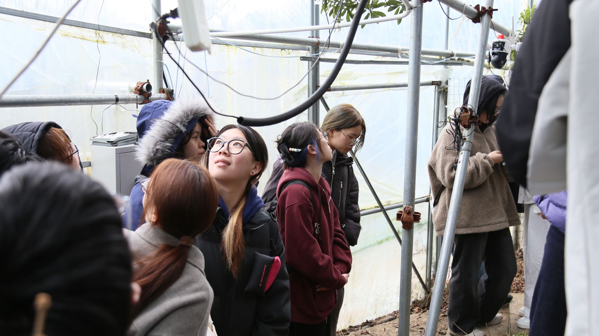 在乾炳村,村干部胡文波主任详细介绍了村庄的发展历史、现状特征以及未来发展思路,并带领师生参观了宁波市杨梅种植龙头企业——迪锋杨梅种植基地,企业家戚迪锋讲解了杨梅生态种植技术和智慧农业的应用,使同学们对现代农业有了更深入的了解。