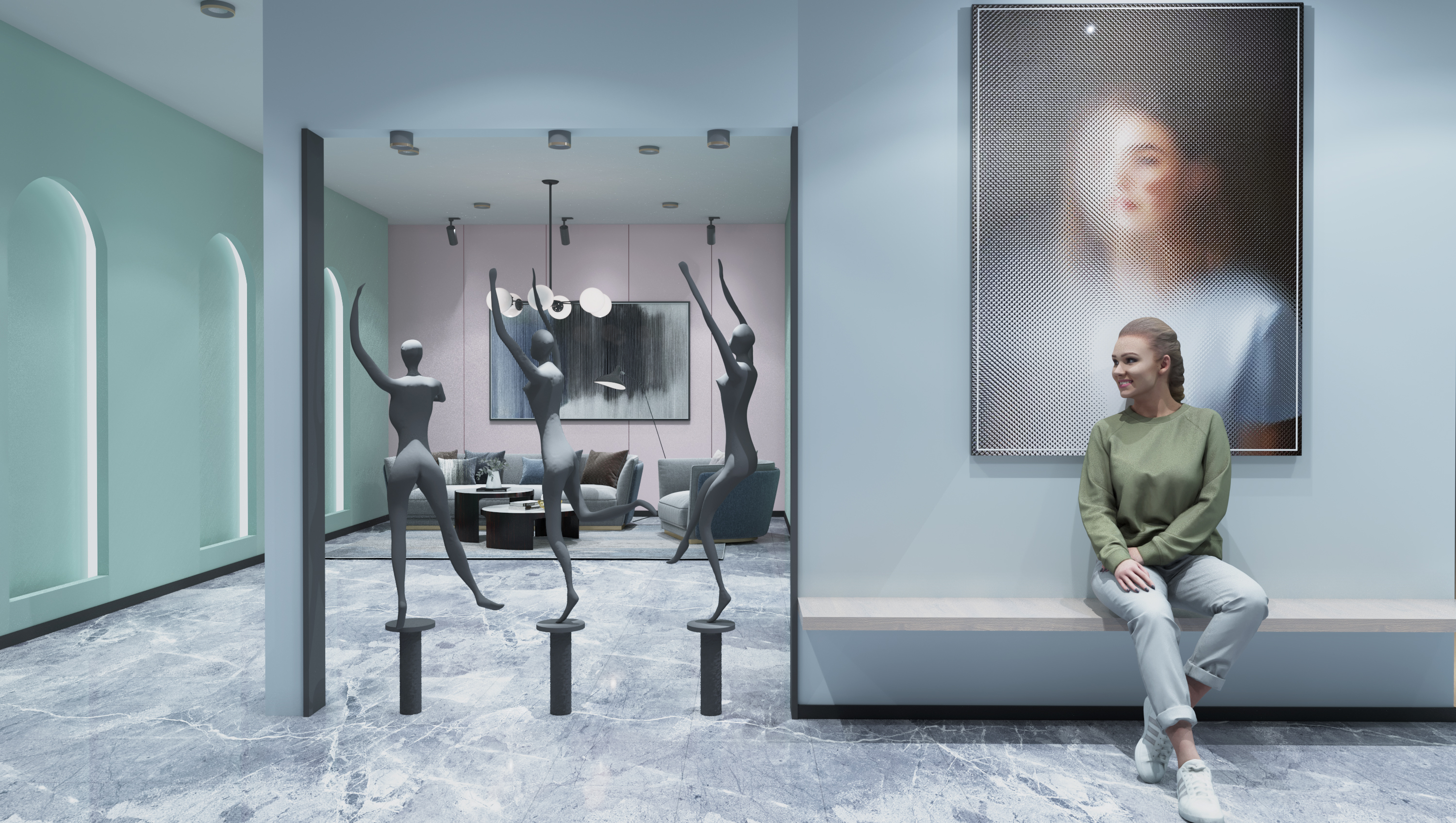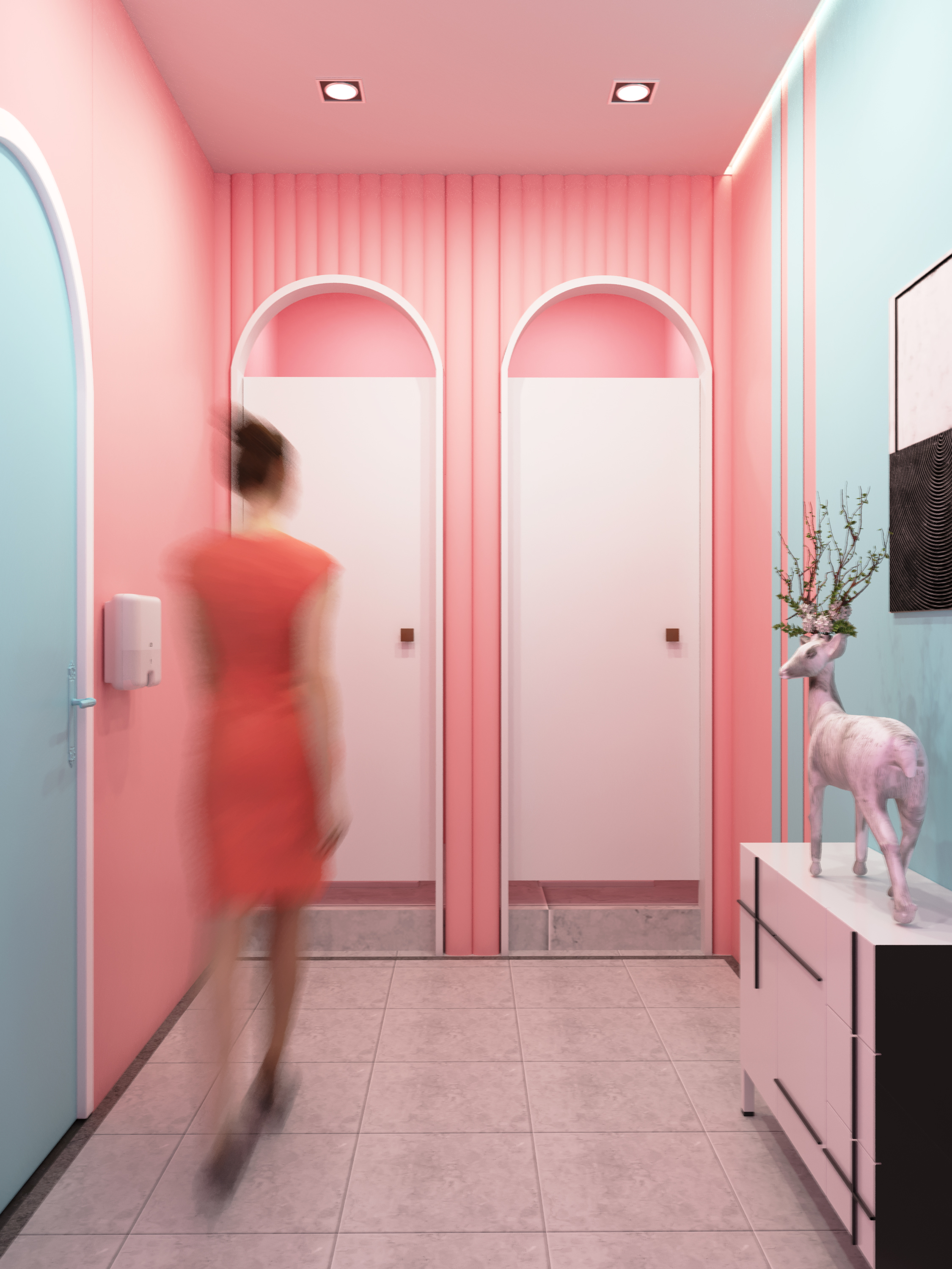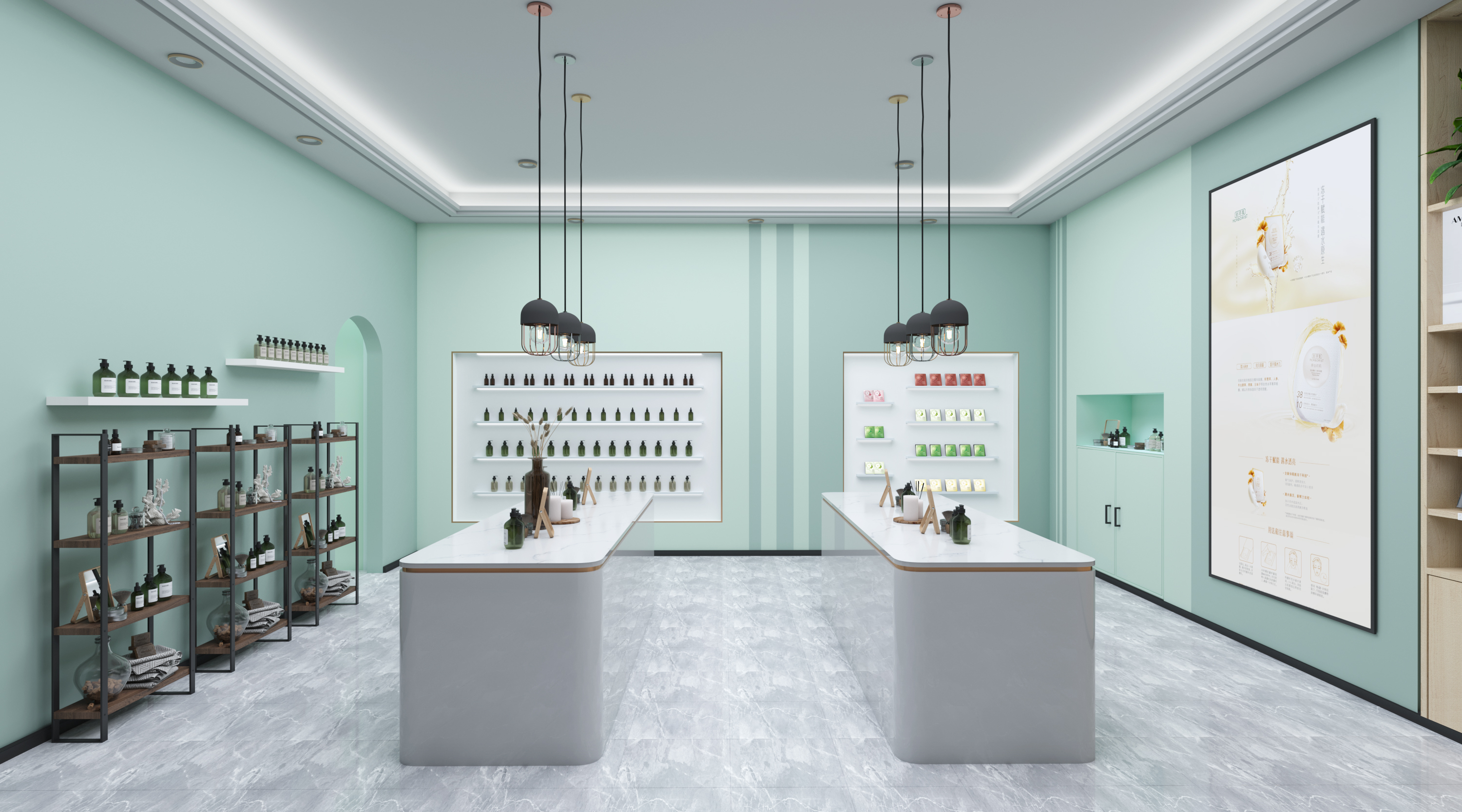 本次设计是根据佰草集品牌自身特点和文化理念,利用了中草药、天圆地方、女性、阴阳、自然、循环这六个设计元素,以及佰草集的传统文化思想,融入于整个展厅之中,通过设计以及数字化设备的运用,让整个展厅与消费者之间产生更强的交互性。在颜色上的选取,从自然中提取主题色彩,让展厅的配色有依据,造型上的选取,通过设计元素的提取,将一些具象的事物转换为抽象的几何线条进行重新构成,设计出这些场景造型,材料的运用,选取木材质以及带有颗粒感的肌理漆,来适应自然的主题,同时墙面的细腻感,在触感上有一定的心理作用。以及根据人的消费行为,设计的流动路线等等。