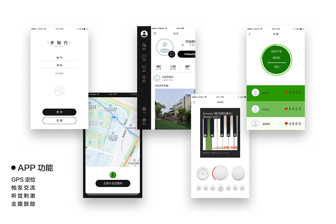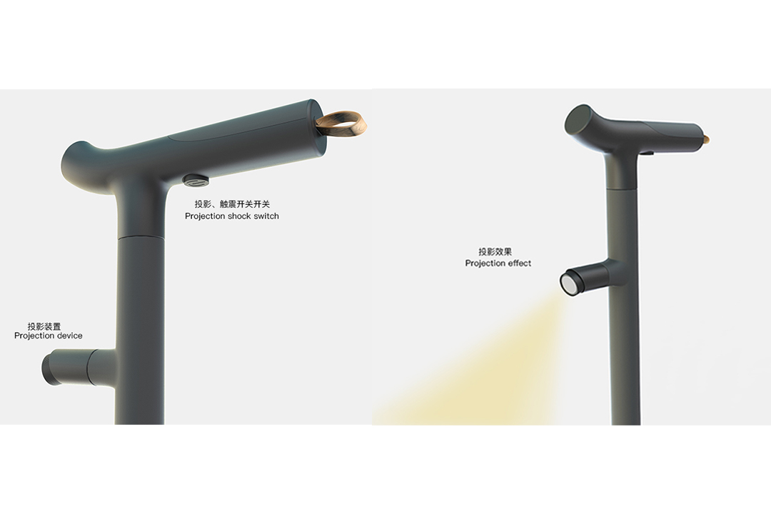 对于帕金森病人来说,步态冻结的问题困扰了他们的生活,在走路时,他们会突然迈不开步,脚好像被黏在了地上,四肢不听大脑的指挥。这个毛病禁锢了病人的生活范围,大大增加了他们的苦闷和烦恼。目前研究利用感官刺激可以帮助病人恢复大脑的反应。这款辅助步行器设计利用投影技术和震动来实现视觉和触觉的双重刺激,意图缓解步态冻结的困扰,加快他们的反应速度和步伐行走速度。同时改产品配合专门为病人使用的APP,鼓励病人之间多多交流,扩大帕金森病友的社交圈,帮他们建立更好的人际关系。