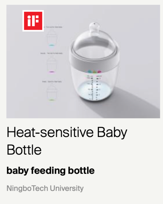 近日,备受瞩目的2025年德国iF设计奖揭晓,公司yl永利集团官网登录智能交互设计专业贾鑫、姜燚威老师以及231班徐萍同学携手设计的作品“Heat-sensitive Baby Bottle”脱颖而出,荣获该奖项,为公司再添荣耀。