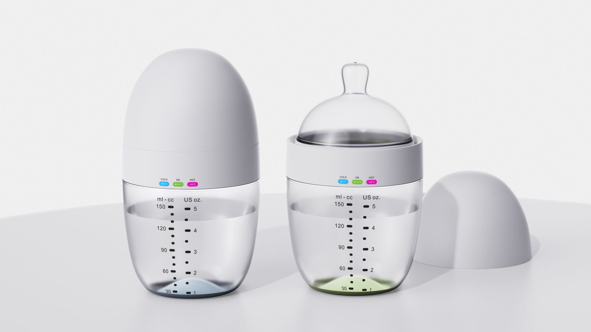 本次获奖作品“Heat-sensitive Baby Bottle”,巧妙地革新了传统奶瓶测温的交互方式,解决了温度测量不便与误判的难题。该奶瓶在底部巧妙融入了无毒、无味且环保的温度感应材料,它能随奶液或水温的变化而呈现出不同的色彩,精准指示出最适宜的喂养温度。其匠心独运的通道结构设计,有效防止奶渍渗入瓶身内部,不仅确保了奶瓶的清洁卫生,还大大减轻了清洗的繁琐。此外,奶瓶的外观设计简约而不失时尚,线条流畅优雅,完美契合了现代家庭对美学的追求。