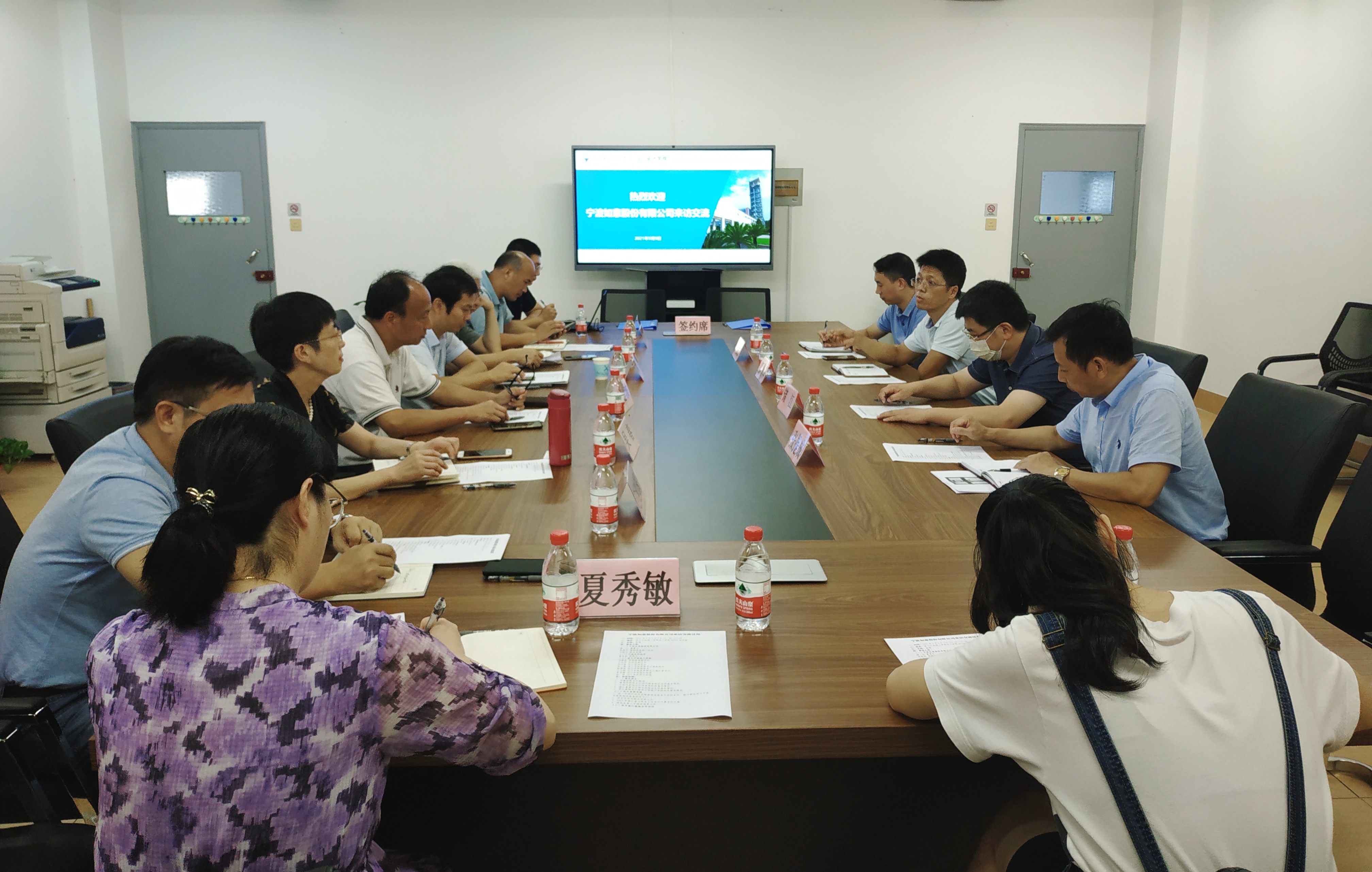 2021年9月9日下午,宁波如意股份有限公司董事长储江、宁海县科技局副局长葛周泽一行到访yl永利集团官网登录,就加强校地交流、促进政产学研合作等事宜进行了深入洽谈。公司党委副书记冯建波,科研处副处长于在河,yl永利集团官网登录经理罗仕鉴、党委书记吴春、党委副书记叶卫树、副经理赵建国、经理助理张峰、夏秀敏等出席洽谈会。
