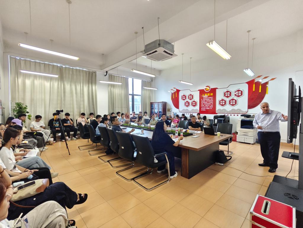 陈江在开场致辞中,对Mohamed Osmani教授的到来表示了热烈的欢迎和衷心的感谢。他强调,Mohamed Osmani教授在工业生态设计、艺术疗愈和期刊论文写作等领域拥有深厚的造诣和丰富的实践经验,此次讲座将为公司师生提供宝贵的学习机会和灵感源泉。
