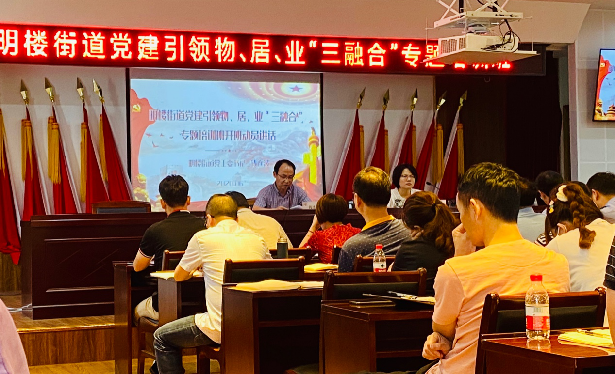 6月29日,yl永利集团官网登录社区营造团队受鄞州区明楼街道邀请,为党建引领物、居、业“三融合”专题培训班展开专题授课,王志蓉副教授带队吴珊珊、张倩茜老师进行授课。该专题培训班为加强基层社区党建引领下的全域治理工作,积极打造“红管家”物居业三者融合“明楼模式”而开展。培训班由办事处主任倪骋主持,党工委书记钱连波做培训动员讲话,参会人员包括街道班子成员、街道科室长、全体社区工作者及城管办工作人员。