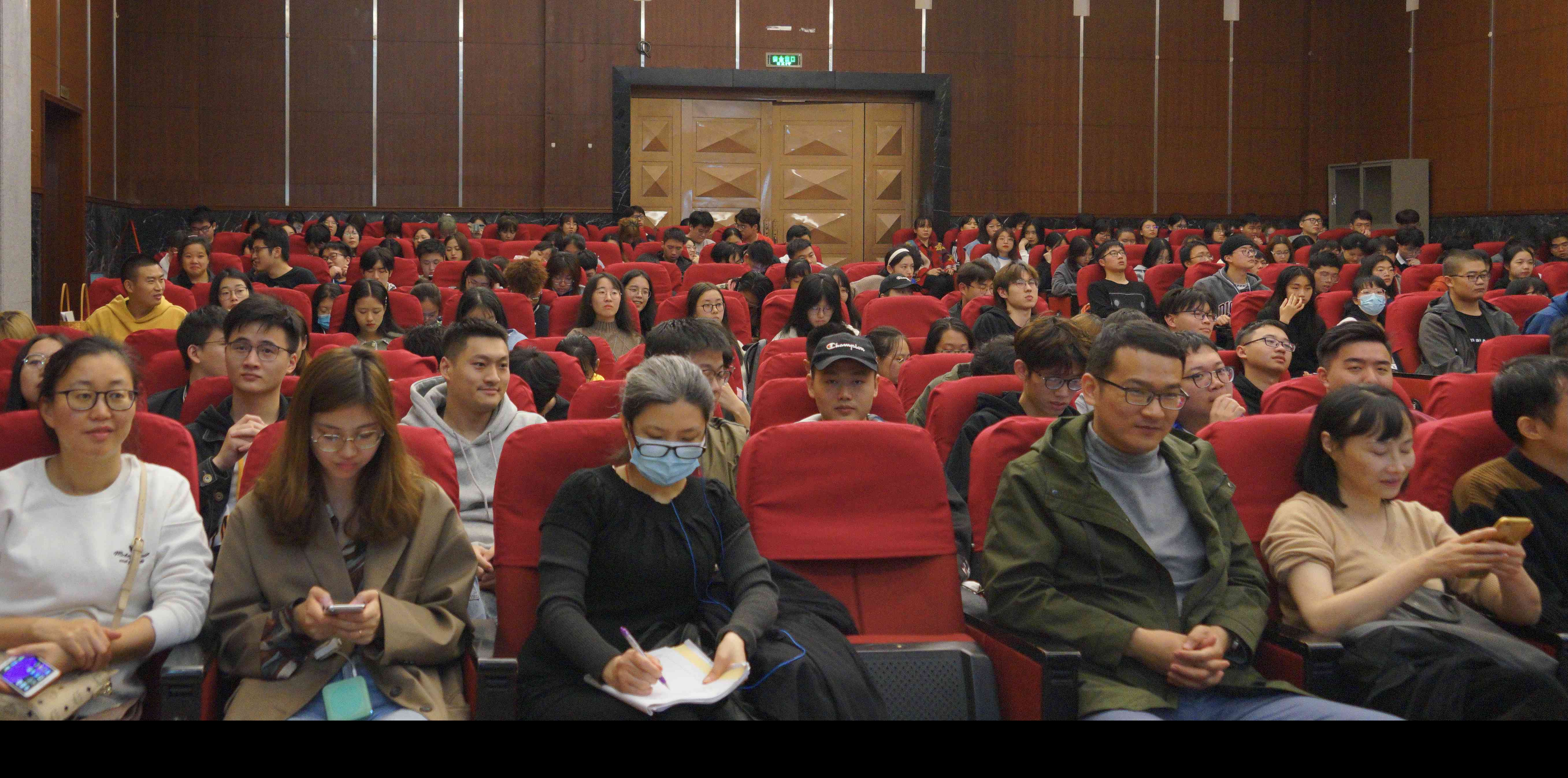 提问环节,台下与会者踊跃提问,台上教授耐心回答,第一位提问的同学获得了一本由吴震陵教授合著的《惟学无际》,吴震陵教授为该书附上了寄语与签名。