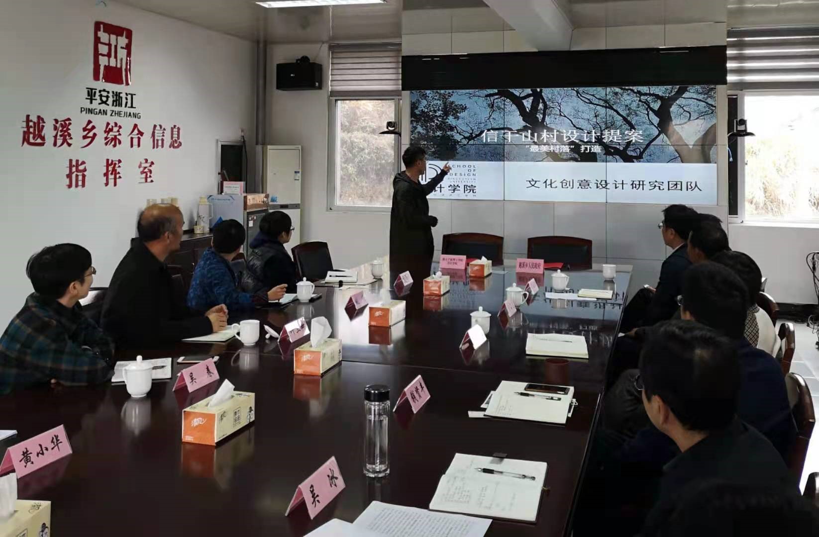 yl永利集团官网登录智慧人居环境设计系系副主任黄小华带领的文化创意设计研究团队通过对越溪乡信干山村前期调研考察,在此次座谈会中给出了信干山“最美村落”打造的设计提案,包括村落沿路的旧物改造、墙绘比赛、村落花房、网红美景打卡点、土特产包装等,提案内容得到了越溪乡村领导的一致肯定。