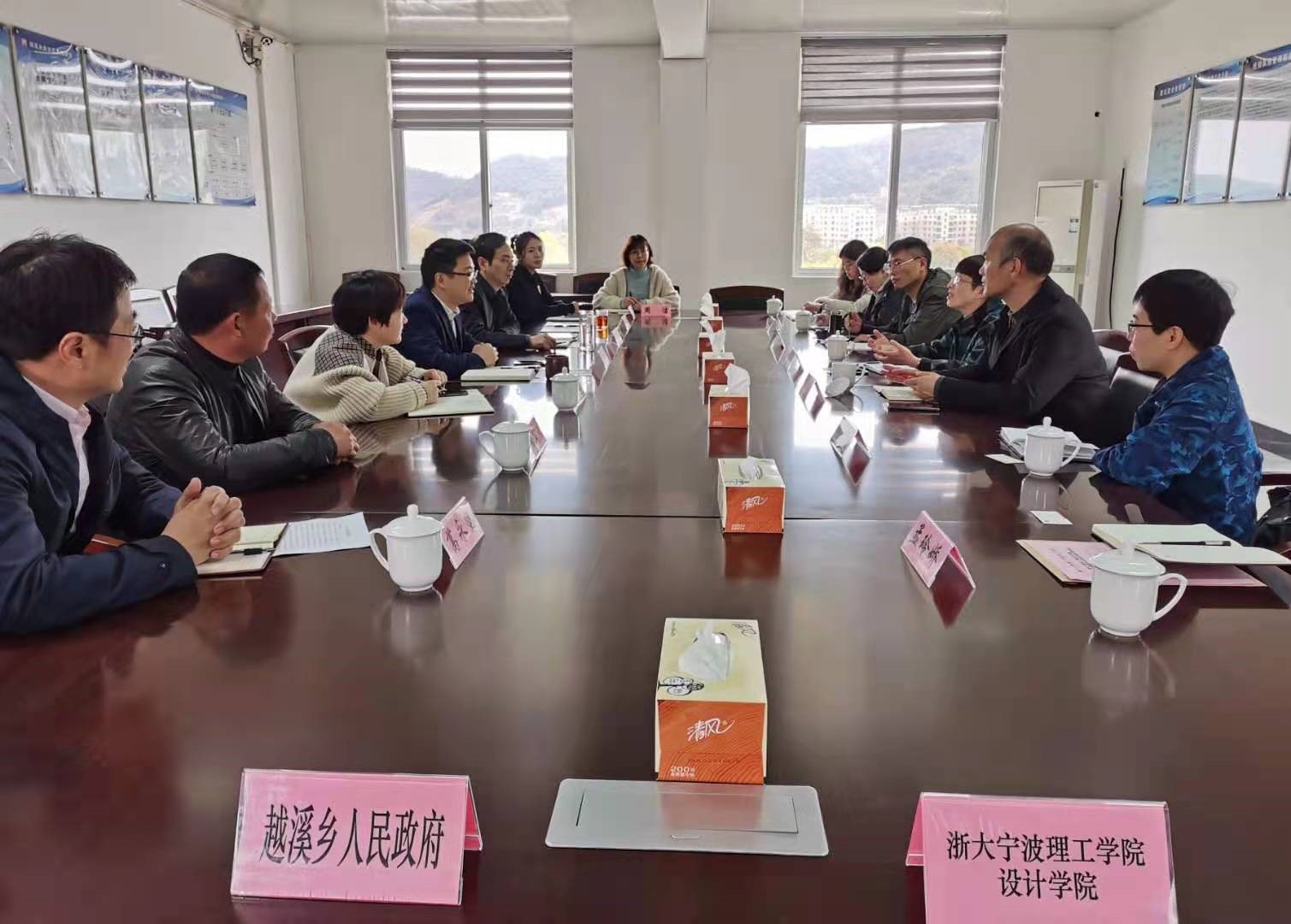 为贯彻落实中共中央一号文件《中共中央 国务院关于全面推进乡村振兴加快农业农村现代化的意见》精神,发挥高校作用,助力乡村振兴, 3月24日下午,永利集团官网公司党委书记吴春,党委副书记叶卫树,yl永利集团官网登录智慧人居环境设计系系副主任黄小华等教师代表一行6人赴宁海县越溪乡人民政府交流考察,双方成功签约yl永利集团官网登录--宁海县越溪乡人民政府教学与创新实践(实习)基地。越溪乡党委书记钱贤丰等领导班子成员陪同接待并召开座谈会。