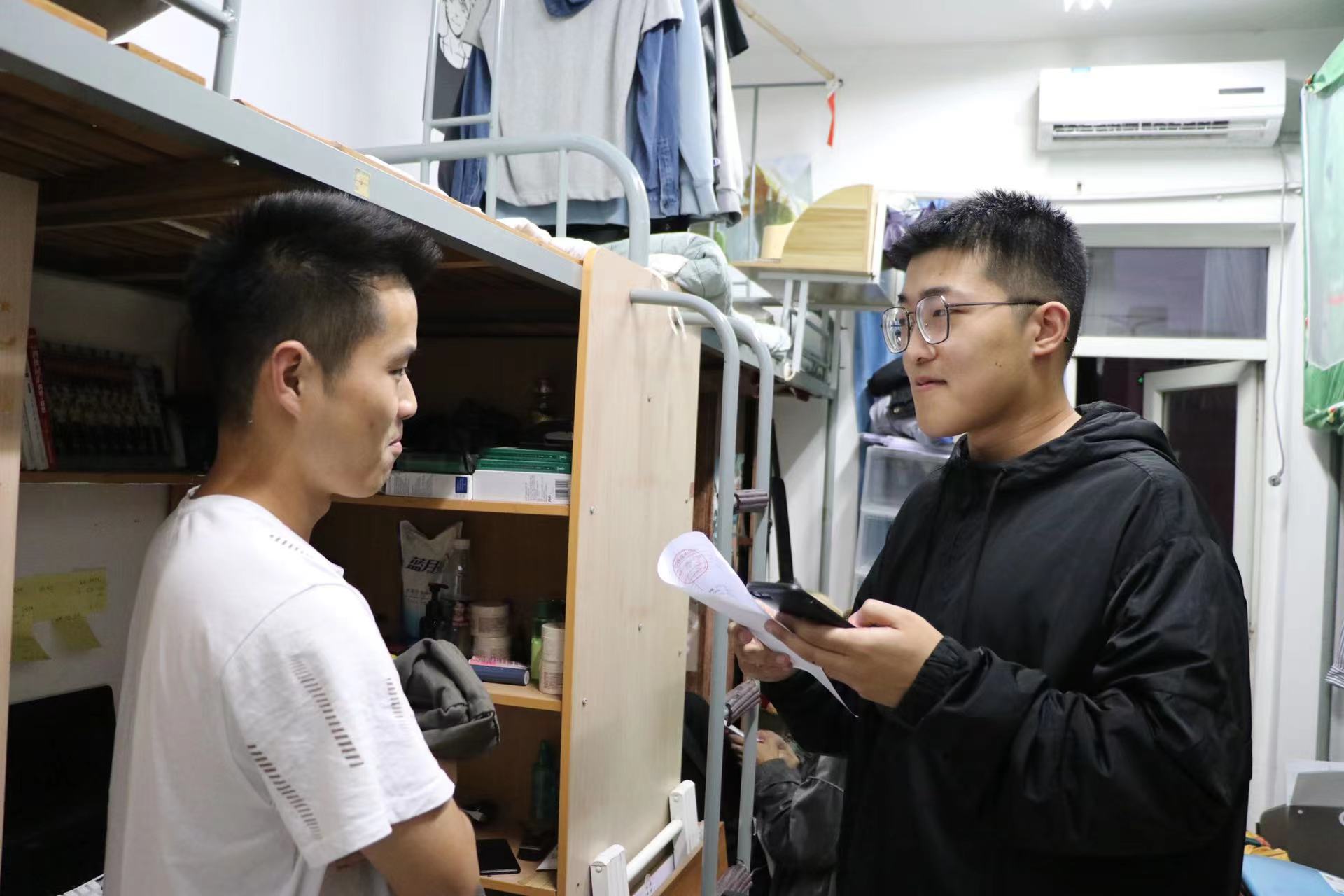 寝室环境需要大家共同保持,拥有一个良好舒适的寝室环境,能极大促进同学们在学习生活各个方面的发展。yl永利集团官网登录安全卫士们分别从寝室卫生、私拉电线、违禁电器等方面问题向每位同学普及卫生和安全方面的相关知识,并对个别卫生不达标寝室进行帮助和督促,呼吁每个寝室努力做好卫生,将其建设成为整洁、文明、安全的寝室。