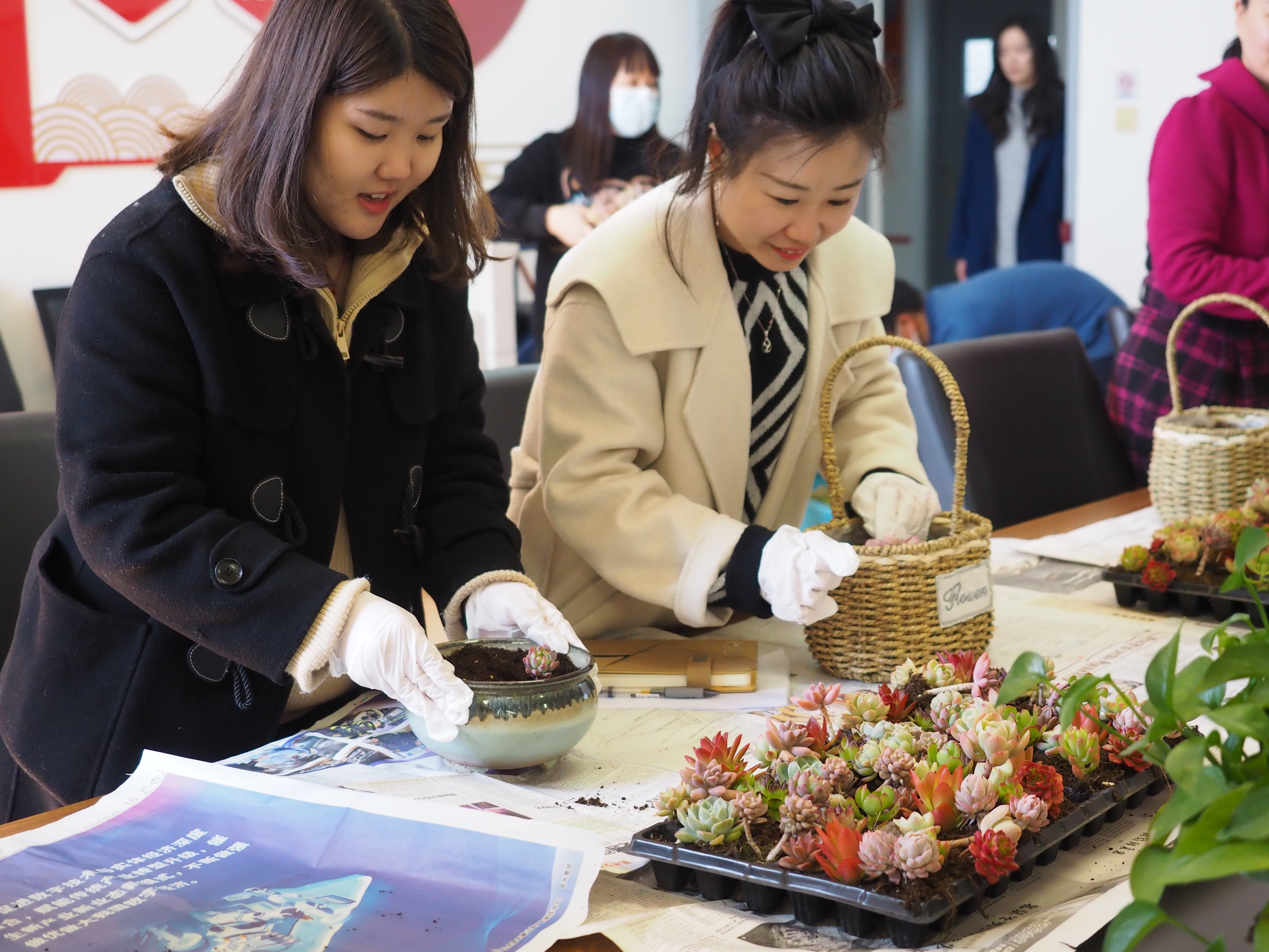 为营造“三八”妇女节节日氛围,丰富女性教职工的业余文化生活,yl永利集团官网登录分工会积极开展节庆活动,于3月8日下午在SE306开展多肉植物盆栽种植培训。yl永利集团官网登录广大女教职工积极参与,享受种植劳动所带来的快乐。