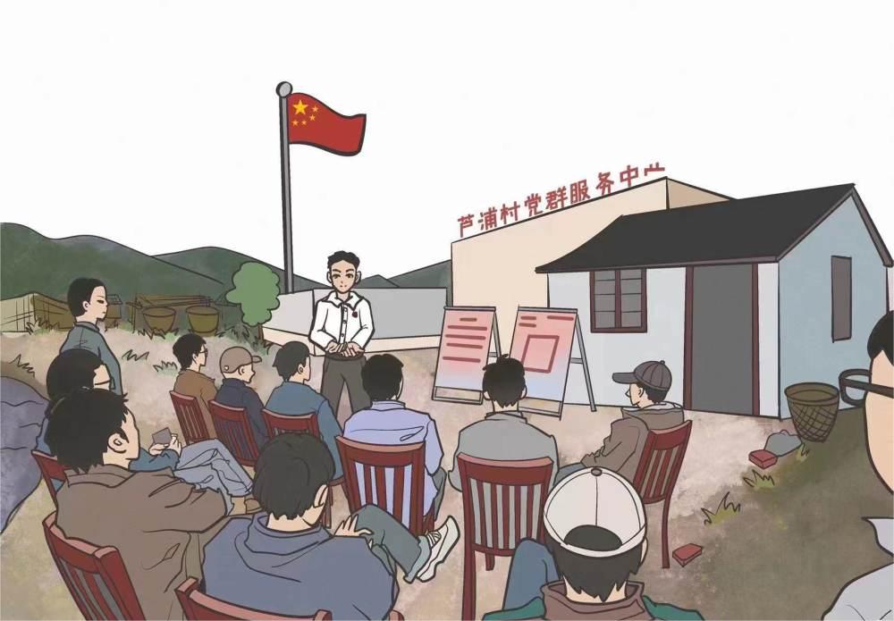展会现场,革命老区芦浦村的画面吸引了很多市民驻足。其中《养殖塘边的宣讲》一图,画的是咸祥镇“90后”机关党员以村民们关心关注的话题为切入点,在养殖塘边向十余名养殖户宣讲党的二十大精神的画面。这是yl永利集团官网登录大二员工俞谦礼的作品,他学的是数字媒体艺术专业。“无意间在朋友圈刷到了这则新闻,我在ipad中花了3天时间就画完了。”