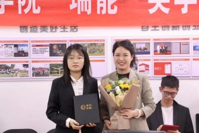 随后,数字媒体艺术192班的何诗琦作为获奖代表进行发言。她表示,青春孕育无限希望,青年创造美好未来。感谢宁波瑞能智慧股份有限公司对设计学子的帮助和支持,也呼吁设计学子在赋能产业、美化生活的各类设计行业中,展现青年风采、奉献青年智慧、贡献青年力量。