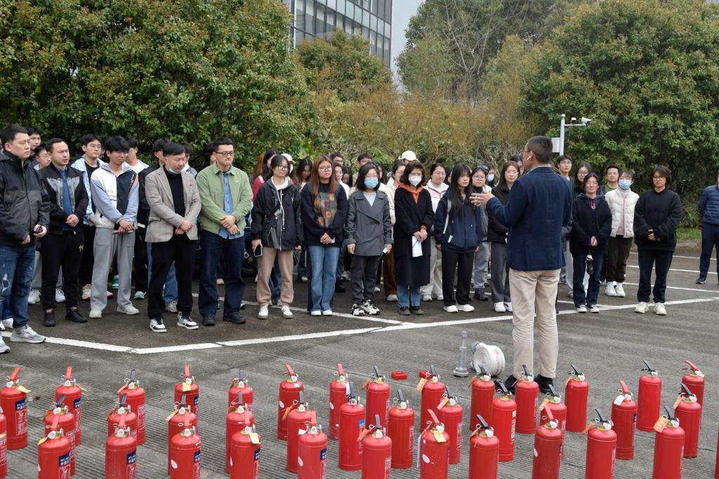 疏散演习结束后,公司保卫处燕永波老师先就本次消防安全疏散演习进行总结,肯定了师生演习过程中的良好秩序和处理紧急事件时敏捷的应变能力。然后向到场师生讲解了谨防火灾发生的注意事项、发生火灾时的逃生办法和灭火器材的使用方法,最后开展了具有针对性的实践操作指导。