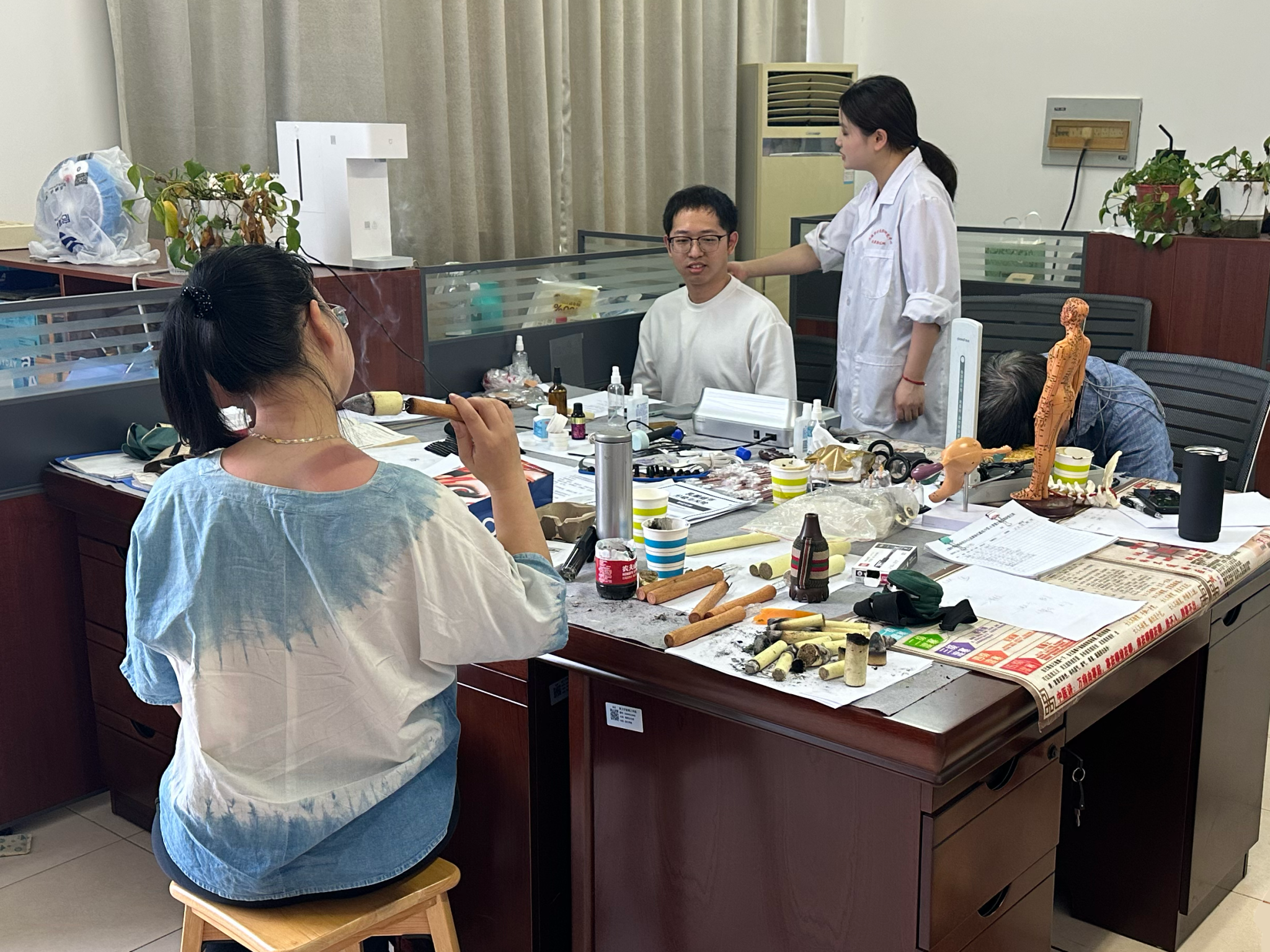 活动期间,医生为教职工提供了全面的中医诊疗服务,涵盖颈椎病、腰椎病、肩周炎、失眠等职业常见病症的针灸、推拿调理。同时,还开展了健康咨询,为教职工进行亚健康状态评估、慢性病预防以及中医养生建议。此外,特色体验项目如中医体质辨识、艾灸理疗、经络检测也得到了教职工的广泛关注和积极参与。